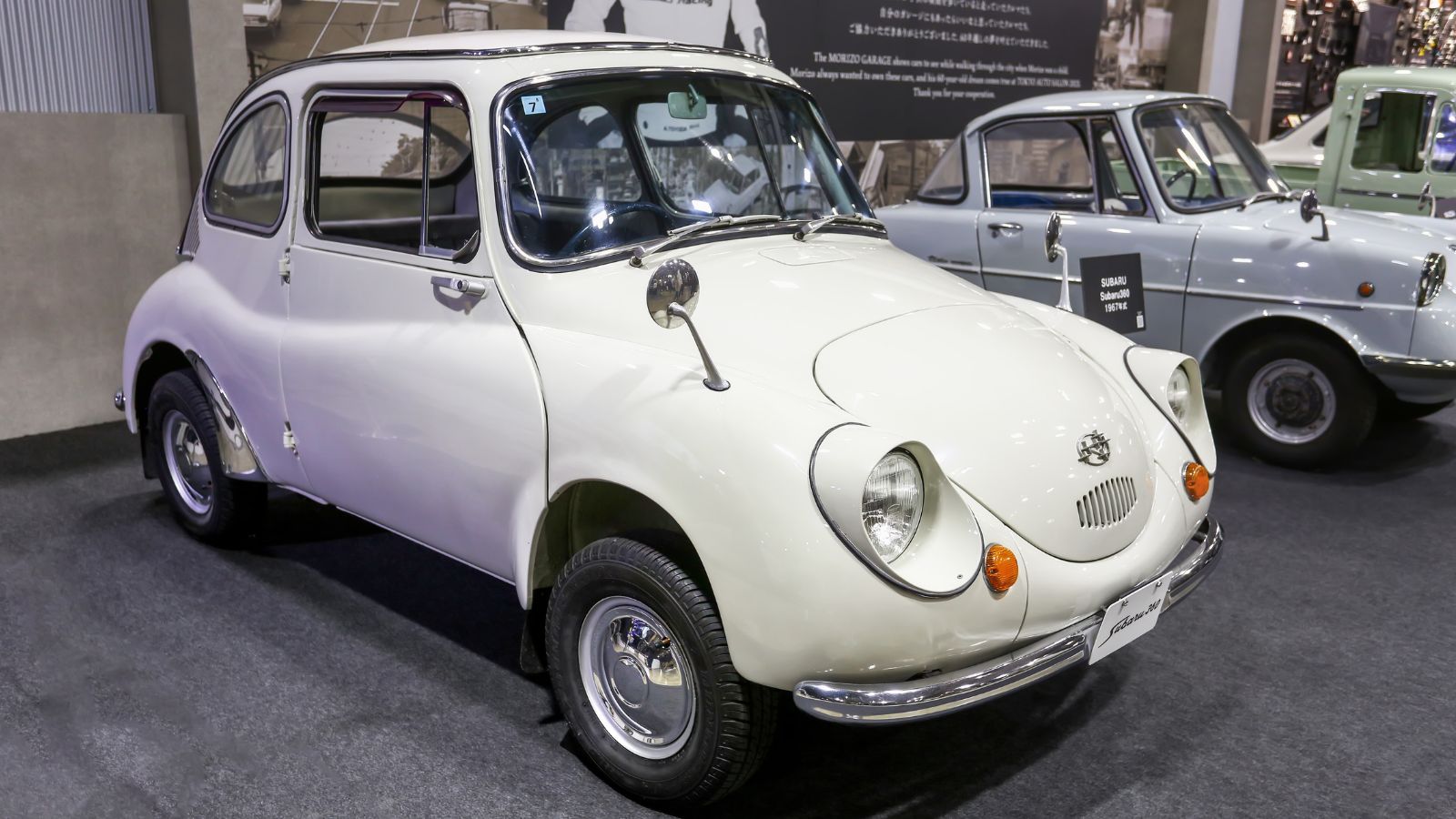 The Subaru 360 was one of the earliest Japanese cars sold in the United States. Its extremely small size and lightweight construction were designed to deliver excellent fuel efficiency.