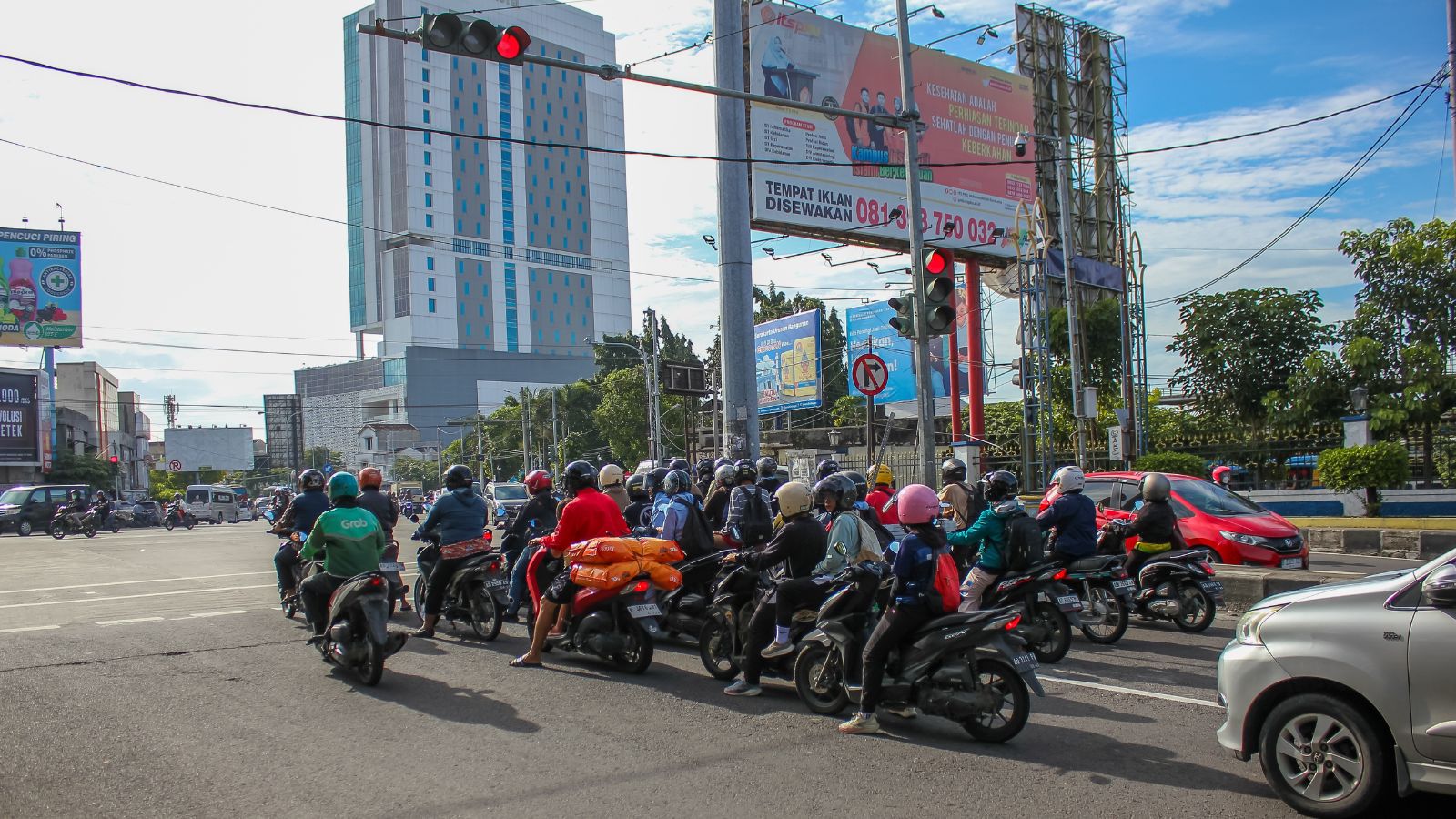 Motorcyclist waiting at a traffic light